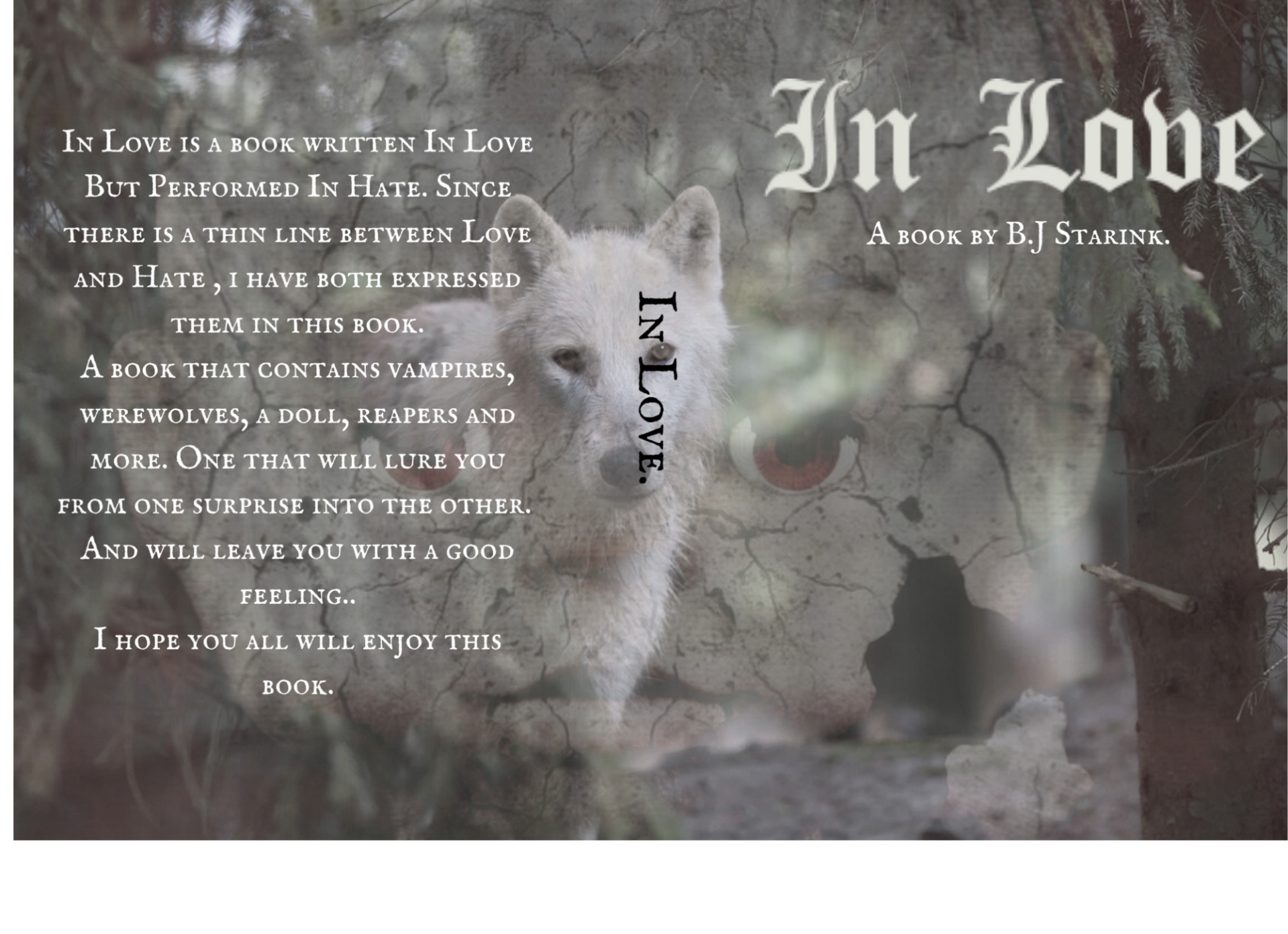 The book I just finished writing is something different. It's something what I hope is never done before. For it contains werewolfs vampires witches reapers a doll shapeshifters and a war. It's my best book and it still is simple. I'm a simple writer, without any hard words or something most people do not understand and have to put away. This book has the potential to be big. Well all books can be big but not all writers including me have a large fanbase.